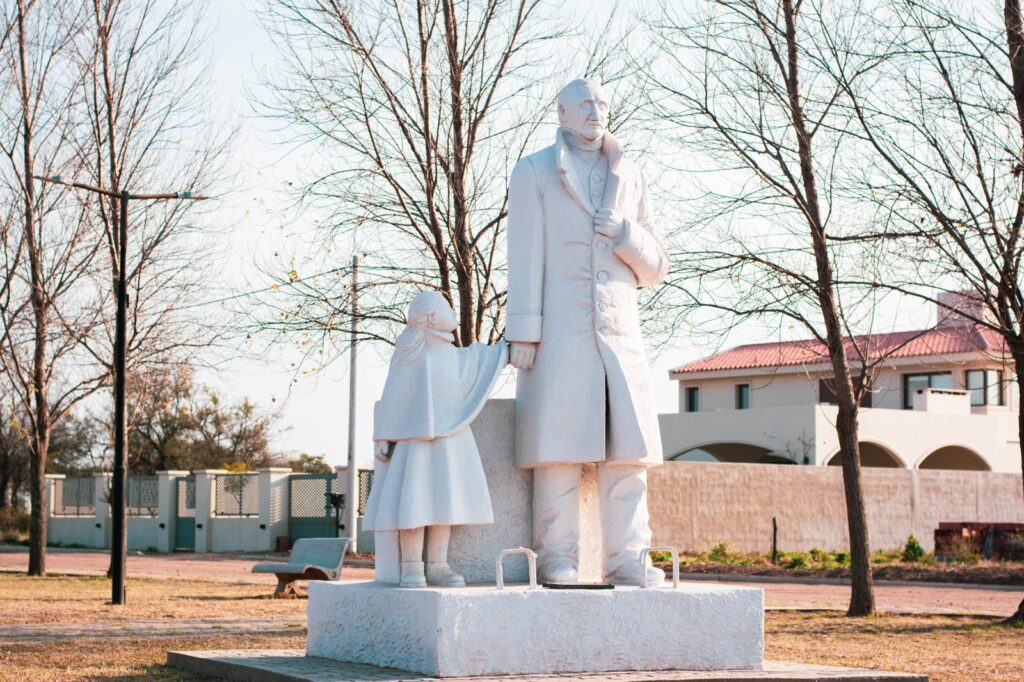 La escultura, proyectada por el Instituto Sanmartiniano de Jesús María y el Rotary, estuvo muchos años en el sector conocido como “El triángulo”, en Ruta 9 y calle Belgrano, pero por las obras del Viaducto fue removido.